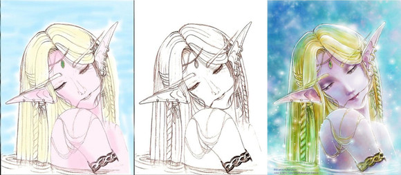 beautiful drawings, and im amazed that you'd actually colour the whole thing...so tiring isnt it? o.0