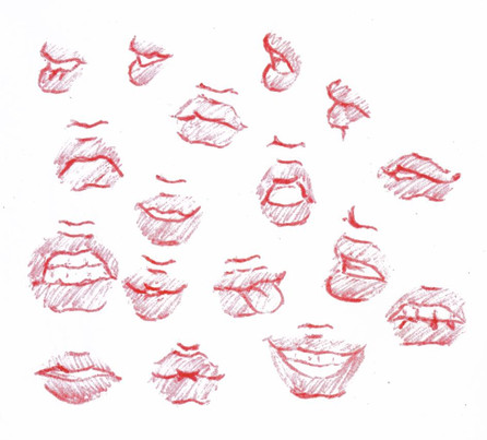 just a pathetic portion of the expressions a human mouth can make. Done using photoshop, my tablet and photobooth. my own mouth used as the reff.