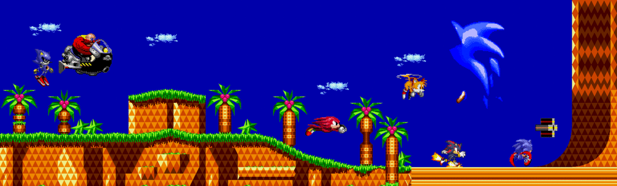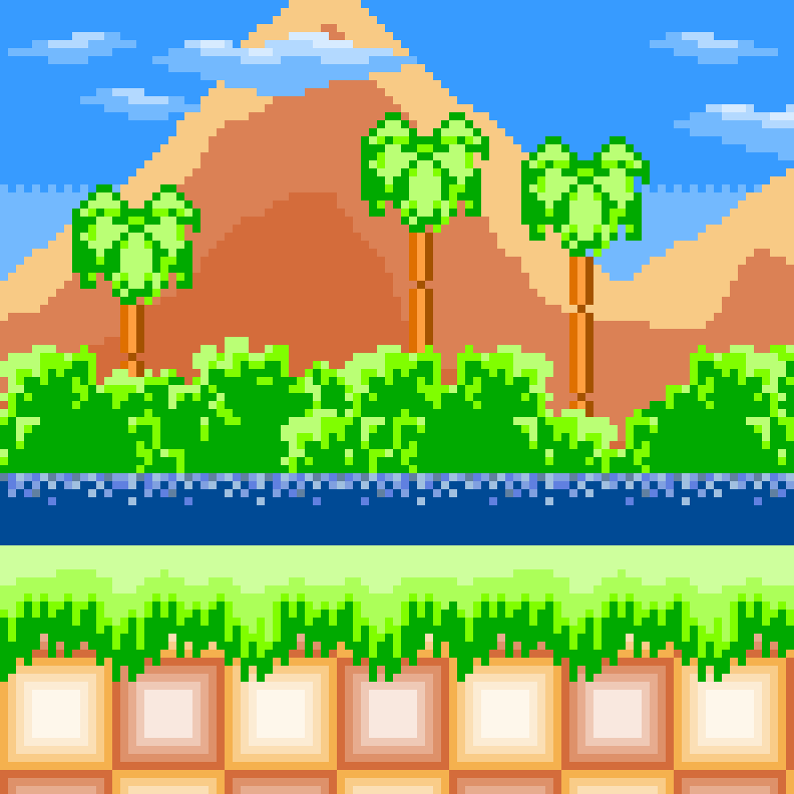 Because I was told it couldn't be done, here's Sonic spinning through a loop-de-loop while collecting rings. All at a mere 50x50 pixels! This was made to be similar to my other piece.Sonic the Hedgehog © SEGA