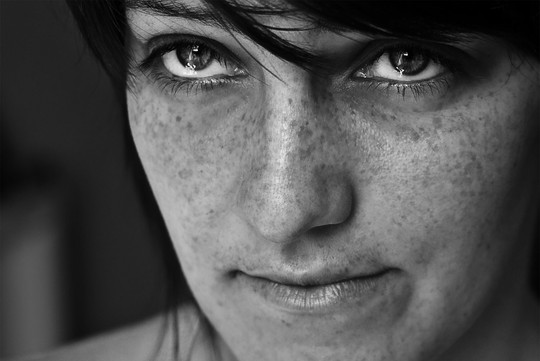 Looove the freckles! What a beautiful, striking face. Wonderfully taken photo!