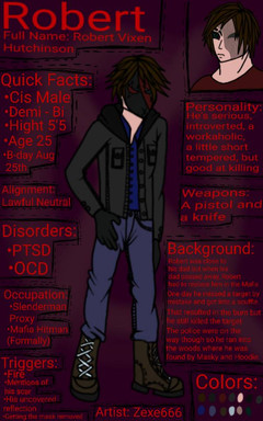 Weapon(s):Tends to carry a knife or a collapsible spear/staff around. Has recently started using RazorFloss