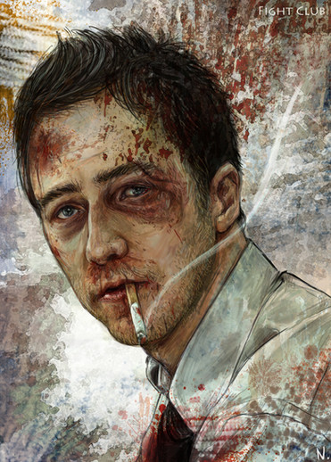 Love fight club!!! your pencil work is just amazing and your attention to detail is too, the facial hair in paticular is nicely defined! the expression in both the charters eyes also portrays a boat load of emotion in such a simple way, well done and great work!