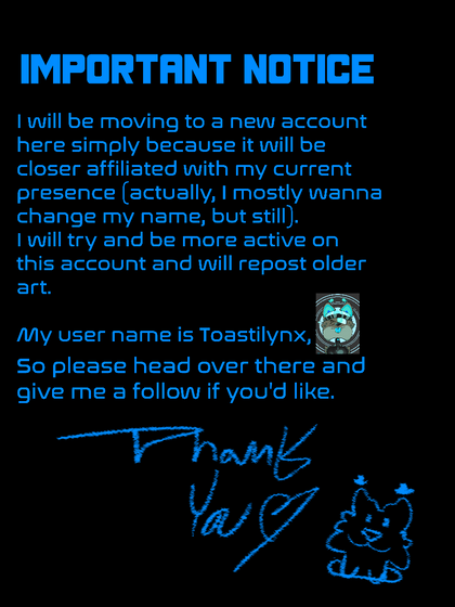 Figured I should make a deviation, since most peeps don't look at journals as much!My new account is Cryptid-Gull , see the journal post for a little bit more info: www.deviantart.com/blueefall/j…