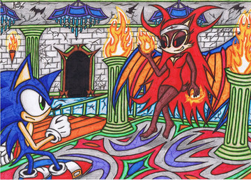 For ~Bound-For-Freedom 's Halloween Contest. Yup, that's right, this is Sonic and Sally! Could you tell? Sonic's a werewolf, and Sally's a vampire princess. I hooked my old scanner up just to make sure this scanned right. I added the flame in OpenCanvas, and it kind of sucks. XD Wish me luck! =3Sonic and Sally © Sega/Archie/SonicTeam/DiC, etc!