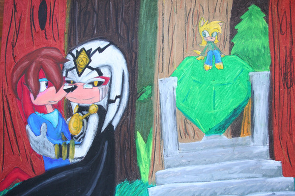 Colors could've been darker though. But I really like how you did this. I love the design on Sonic as a dog/beastie, 'specially the face/head and the ears, and Sally's outfit is kickass!