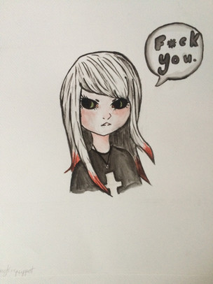 She is an introvert, and because of this people usually tries to avoid or ignore her. she is a creative person and loves to sit by herself and draw her surroundings. she also loves to sing, but only does so when hanging out with her closest friends, like her best friend Marion or her girlfriend Kyu.