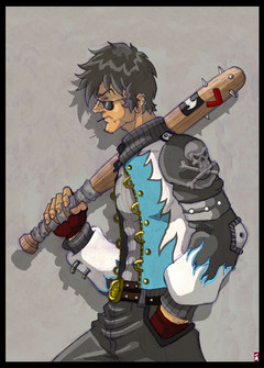 Thanks for the comments! Chamber's power is, I think, bio-kinetic blasts. Basically, when he was a teenager he got really pissed off and blew away his chest and the lower part of his face. His body is, therefore, dead and now is just a sort of shell for the energy he contains. So, poor Jono's really just an animated corpse. He wears the bandages to keep the energy - which look like flames - from scaring the crap out of people. Yep, I think he's cool... and I'm a nerd