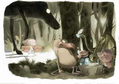 very cool. yeah im feeln the alice vibe...there was also another story, but i cant rem it....(hates getting old) anyhoo, rockn pic love the trees and animals!!