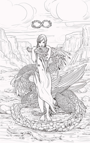 Wow, it's amazing! I love the dragon and the feathers and the coloring turned out so good! <3