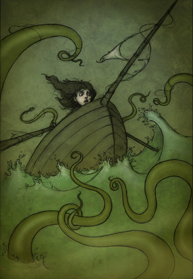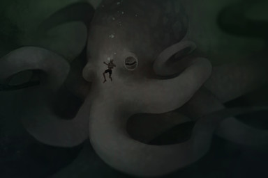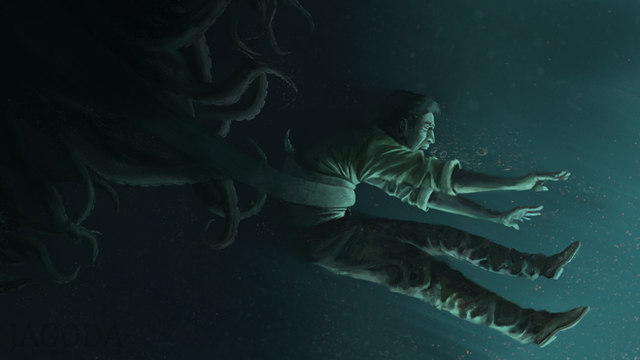 This is so beautiful, you forget the guy is drowning and being sucked downward by an octopus to his death... lol. Good job~