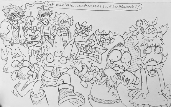 was discussing some ideas for a separate game from World of Chaos, but existing in the same universe, possibly another planet, about this handsome devil (tamerkoh.deviantart.com/art/Me… )'s battle against an evil space witch.Some basic things we've been toying with were power ups and how weapons would be used. Mario has hats, Vector here has pants (tamerkoh.deviantart.com/art/GA… ) and I began to think how the pants would affects the stats of specific weapons.