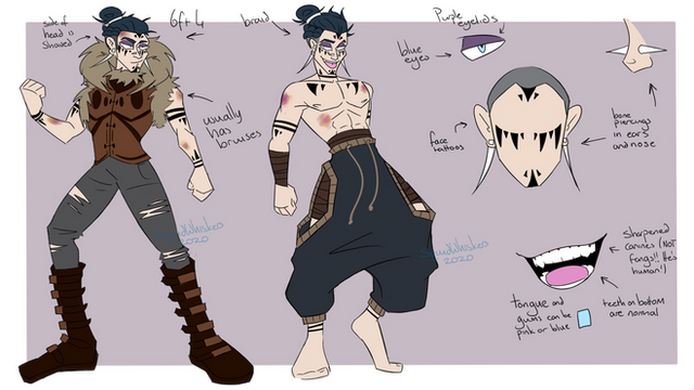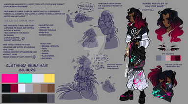 A reference for the character I'm gonna use to represent myself. I've been thinking a lot about how I represent myself as a character in art, and this was a character I designed to represent myself with. This isn't really a true self insert OC, this character doesn't look or act like me; but this is the character I plan to use to represent myself in the future.Their name is Contrast; Captain Contrast to be specific. They live in a universe where almost the entire world is flooded, with only a few islands making up the landmass, and they are the Captain of one of the ships that explore the now flooded Earth and research how humans can possibly live below the waves. They're naked because I decided I wasn't going to draw them a set outfit. Also to show off their scars, but mainly the outfit thing.
