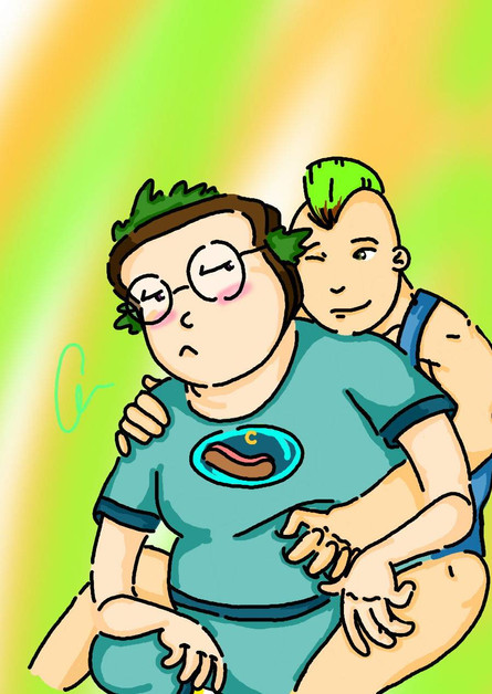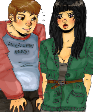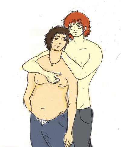 This was a quick doodle of Andy. Then I wanted to add Damon there. That is why his pose is so dumb XD Seriously, lets ignore that arm.Not very good pic, but kinda cute and I like Andy's shirt here XD