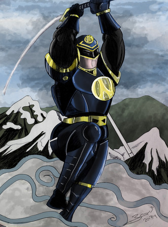 This is an amazing design. I have a Shinken Black in one of my fan fics. It's Takeru so his suit is the same as Shinken Red's but is black. Well, I guess I should say Samurai Red. >.<