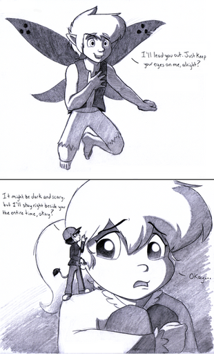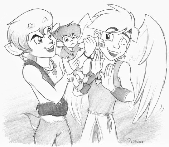I don't know. This image came into my head of them arguing, while Isaac is just there watching, intrigued that people smaller than himself (who is already tiny) are fighting, and all he can do is stare. And I giggled and made it my mission to draw it.I don't understand my sense of humour either.