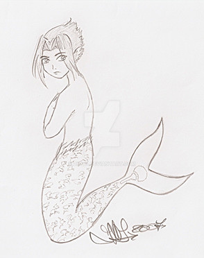 **I should add this, because I don't know when I'll ever do him in color- green eyes, white hair, silver body, fin areas white and the dark parts are really black.