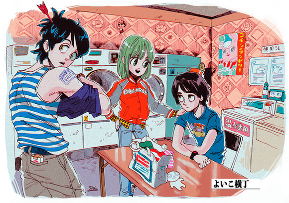 It happened. I am a fan of Kill La Kill. It occurred to me that the amount of clothes Satsuki and the Elite Four go through weekly (daily even??) would be insane. Aaaand after finding some pictures of cute laundromats, this just kinda...happened.This was one of the KLK prints I made for AX2014! It sold out in three days. @___@ You guys are awesome--some people even preordered for the second print run. I'll be doing that within the next couple weeks, so if you're interested in buying a print of this, send me a note and check back here for updates--you could own one soon!