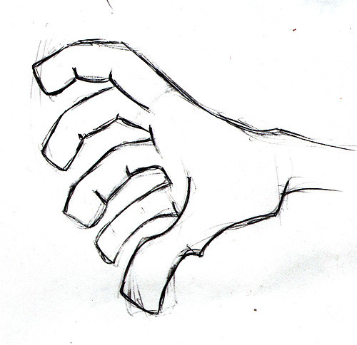 I like your line quality and structure. One thing I'd like to add is that the wrist seems broken to me. I think what throws that off is the thumb connection to the wrist. It should be one continuous line, instead of having the wrist continue behind the thumb.