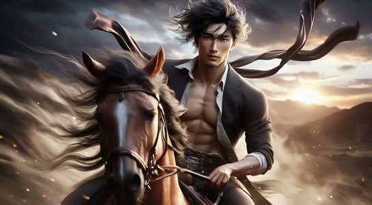 suntan110 - Horse riding young fit shirtless cowboy. [🤖]