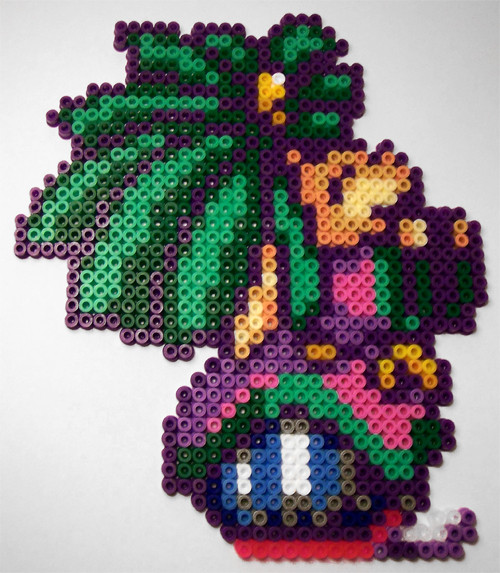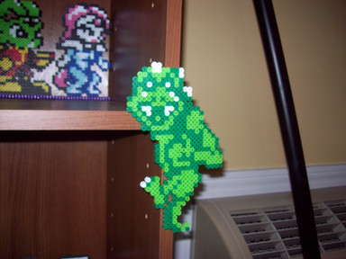 The last of my Super Mario 2 Perler set. I made Toad jumping in this one to remind everyone of his incredible leaping skills in this game........I remember we would visit one of my Dad's friends, and his son had this game and we would play it all the time back in the 90's. He was always trying to convince me to pick Toad because "You can get coins when you go behind the door, and Toad is the quickest picker-upper!"