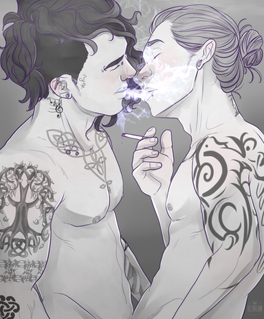 Another piece from kinktober, chosen by the patrons! Featuring two of my OCs from the comic Blue Remedy (on webtoons canvas!), Nick and Sacha :^)