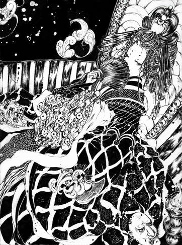 I put it aside in my deviations because I knew I had to give it some time. Now that I have it is truly stunning, but the beautiful detail and the calligraphy style of shading makes it very complicated to look at, this does two things, makes us stop and look longer than the projected 3 seconds that most art gets, and also confuses us. I have no idea where her dress ends in the bottom left or if it does at all. Mind you this is probably one my fave things I have seen in a long time, just thought I would mention it, LOOKS GREAT!