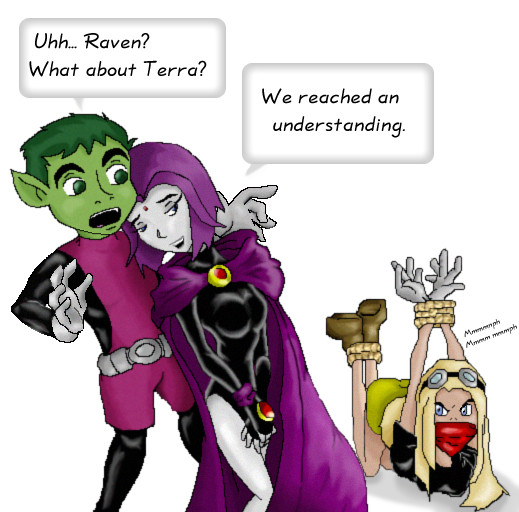 I can respect your choice of Terra and BeastBoy. Personally, I just see something between them. Plus I've always been into that whole concept of opposites attract. I didn't mean to offend you or anyone else who routes for Terra and BeastBoy. I just feel strongly about Raven.