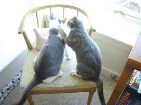 Awww Cute!! I have a pair of cats who do that its so funny! Only cuz one is a hairless and one is a puff puff!