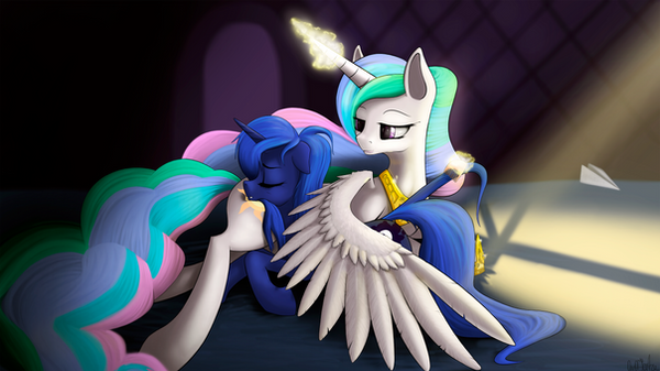 I imagine Celestia has gone through more than her fair share of ordeals that would require Luna to lend her shoulder. Even those who give us the most comfort require it themselves at times.