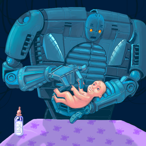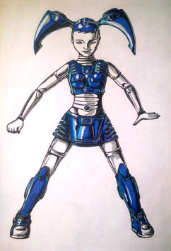 Another sketch of a cyborg mom and her biological daughter; loosely based on and designs, trying another color scheme.