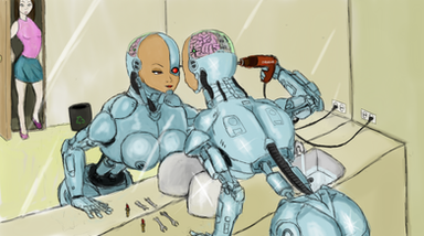 Here we see the newest creations of Doctor Yuliya Kuznetsova (cyborg AR-G01): two "generic" cyborgs DA02-C01, and a cyborg model SC01-DA01.