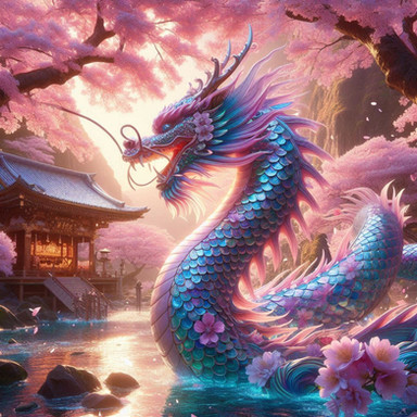 #ai #blossom #blu #cherry #dragon #flowers #light #pink #sakura #aiart
