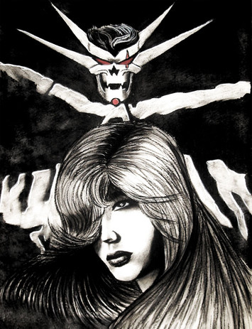 this is wicked.. like how you/the nails devide his face into grids... make it stand out more - add a sort of 3d feel to it.. makes me thikn of those awful cubes your supposed to turn/rotate till you get, what is, six fields with the same colors...? aw how I hate those, this I like though, cool to see something else than a girlpainting from you... ought to paint more other things than girls myself too...