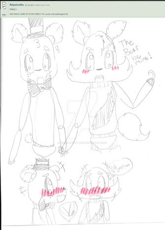 I sometimes ship her with spring, and other times i ship her with Freddy. not withered freddy. just normal Fnaf 1 freddy. it all depends on my mood that day......please don't hurt me.