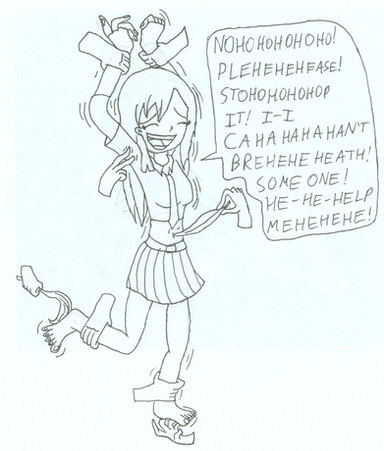 Oh, I'll help you! *pulls off her shirt so tickle hands can get to her nipples easier*