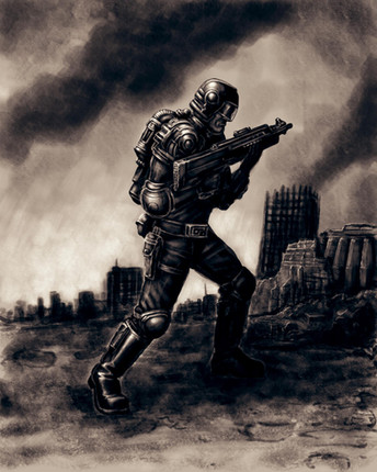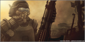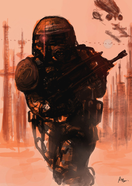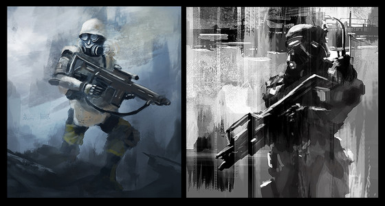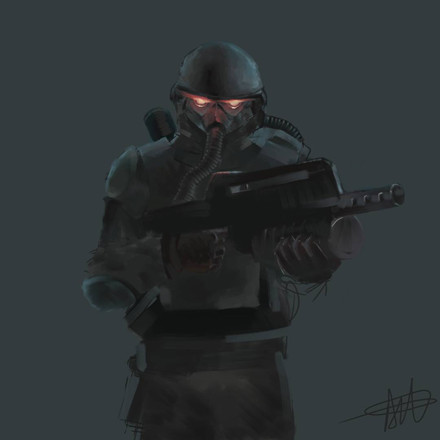 So there I am, happily sketching away at some soldier dude for no other reason than feeling like sketching. 20 minutes in, I go "Hey, this looks like that gasmask dude from Killzone...". Grr. I try to sketch somewhat away from him. 20 minutes later. "Hey, this looks sort of like a Star Wars stormtrooper..." Grr. No way to be original with scifi soldiers these days! Ah well. Was nice to sketch in any case. ^^Related content