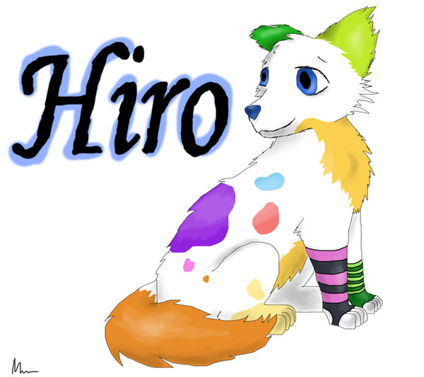 Hiro , gdy sięurodził, był wygnany ze stada, za swoją "inność" (biedny, już wtedy cierpiał ;^; ) Powędrował do ludzi, który osłupieli na jego widok... Tak kolorowy zwierzak nieczęsto się trafia... Zabrano go nigdzie indziej jak ... do cyrku. Tam dorastał i tam był wychowywany, ale jako dziki zwierz chciał powrócić na wolność. Założono mu kolorowe skarpetki na cztery łapy i kazano wykonywać sztuczki. Pewnego dnia Hiro... uciekł wykorzystując triki , które nauczył go cyrk. Dotarł do lasu, ale wszystkie zwierzęta się od niego odwróciły... a wszystko przez futro... Hiro zamieszkał sam... a właściwie to błąkał się to tu to tam.. dopóki nie spotkał Darca. Młode wilki zaprzyjaźniły się, a Hiro pomógł Darcowi uratować jego rodzeństwo, ale został też przez niego zraniony, co o mało nie doprowadziło do jego śmierci. (dłuższa historia XD kiedyś napiszę, ale mnie się nie chce XD ) Ale później Hiro znów został sam... I jest sam do tej pory...