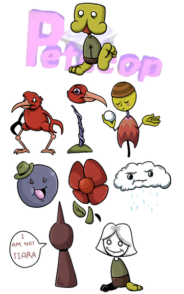A nice set of Petscop stickers I made recently.Featurig Care, Guardian, Bell, Marvin, Dorito Head, all the pets, Tool and some pieces.