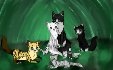 ThunderClan kits of Silverwhisker and Duststep: Beechpaw (brown and ginger tabby tom), Vinepaw (brown tabby she-cat), Willowkit (silver somali she-kit), Scorchkit (red somali tom), and Sagekit (ginger and white tabby she-cat). Duststep dies early on in Endless Storm in a flash flood, and Silverwhisker is killed in a ShadowClan battle shortly after having her second litter, leaving the five cats parentless. Vinepaw had visited the kits before their mother's death, but it isn't until after Silverwhisker dies that Beechpaw decides he ought to pay them a visit. He becomes a sort of protective older brother over the younger litter, telling the kits stories about their parents and playing with them. Vinepaw and Beechpaw always remind the kits how much their mother loved them and how proud they would both be, and Scorchkit takes great pride whenever he is told how similar he is in appearance to his father.Despite the sibling love, Silverwhisker's death has a heavy influence on the kits; we will see how they develop in the near future ^_~