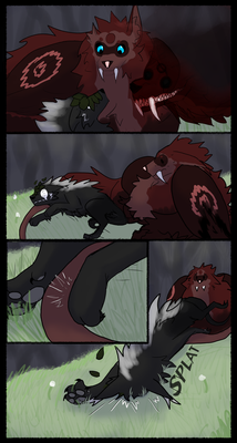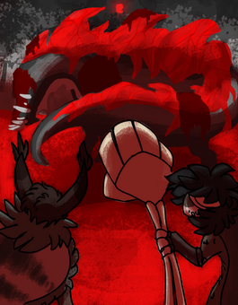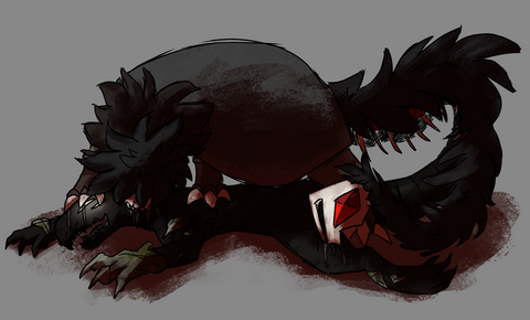 They breathed, and kept breathing, waiting for ages until the pain began residing. A final breath until there was only a dull ache. Though exhausted, she turned to look at the source of her distress. Her tail had elongated, that was the source of the aches. But at the tip… It was a freakish jaw at the end of they’re tail, with muscles that helped it unhinge its maw.