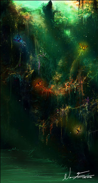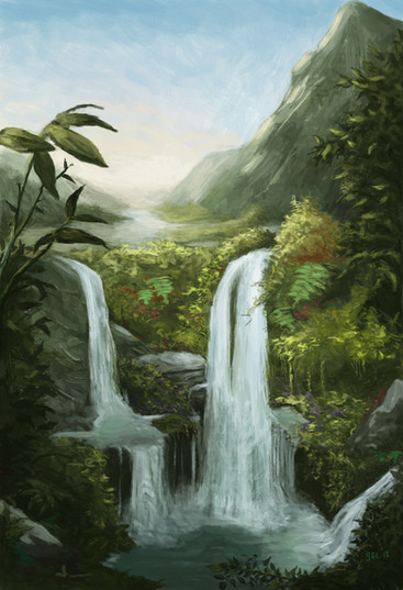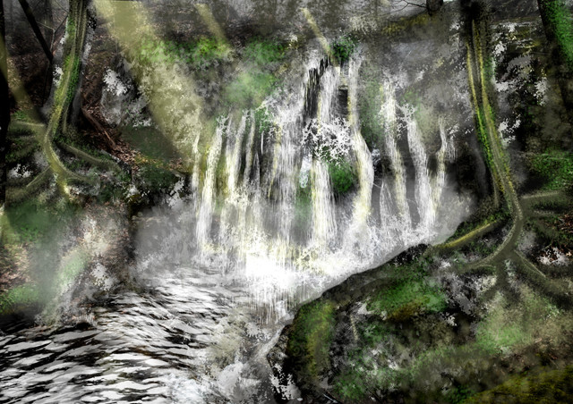 Oh wow, I love this, Photoshop seemed to come especially handy in this picture I believe because photoshop pictures always seem to have a dreary or runny aspect to them--perfect for a waterfall! Great colors too... I think the water spreads out too much before hitting the pond though, kind of creating a prenaural splash, and a 2d feel towards the bottom, but that's not enough to distract from the beauty of this picture as a whole