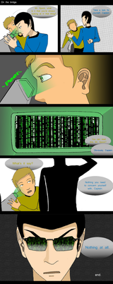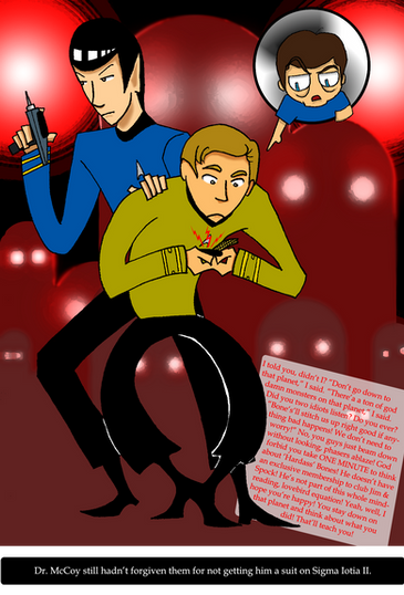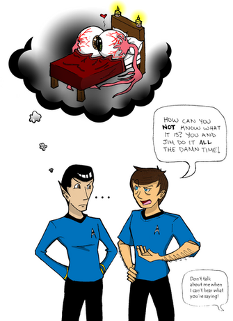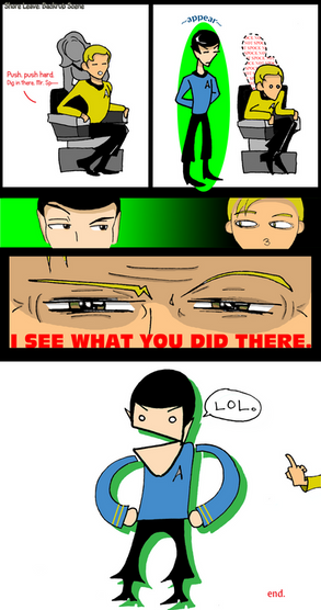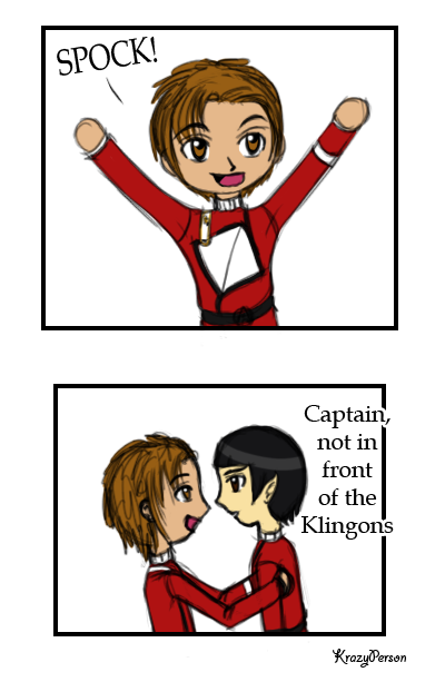 While I still wouldn't consider this real art, I think I'm getting there. Mostly profile practicing, using various Nimoy and Shat pics for reference. The premise was that they had just finished making out (for the first time), initiated by Jim. Which is why Spock looks slightly startled."I'm....so....startled!" *heavy breathing*