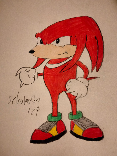 Fan art of Knuckles, from Sonic the Hedgehog - Fine-liner and Pro-MarkersRelated content