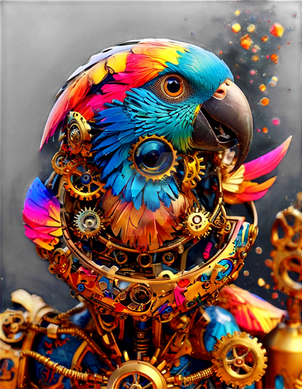 #colorfulbird #mechanicalbird #mechanicalcreatures #raptorart #bmotors #colorfulraptor #gearsonhead #biomechanicalraptor #birdswithgears #gearheadedbird