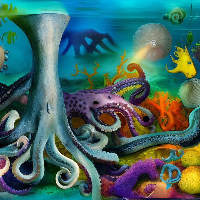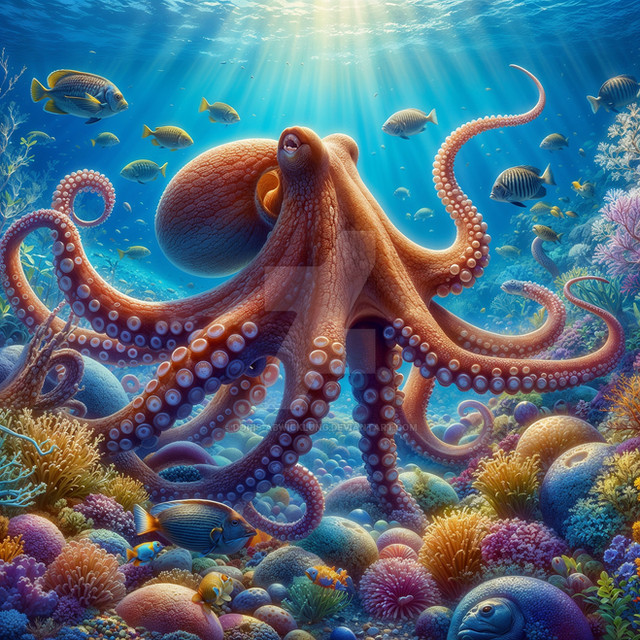 First test octopus image from prompt...Participant in #OceanHarmonyProject - raising awareness of environmental conservation. I hereby vouch that all profits (during the project) from the sale of this image will be donated to the Ocean Conservancy organization. Read more about the project here: www.deviantart.com/voidgift/jo…