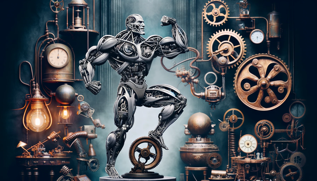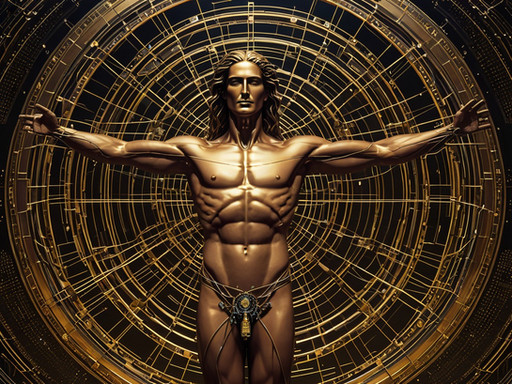 #alchemy #artisticexpression #biomechanics #bronzesculpture #futuristicart #science #visualart #vitruvianman #creativeconcepts #culturalfusion #innovativedesign #philosophyofart #contemporarysculpture #modernalchemy #artandscience #mechanicalevolution #cinematicart #cosmicbalance #engineeringart #sculpturalart #bmotors #electriclife