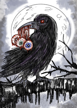 This is one creepy crow. The mood of this picture is great! The only critique I have is to try to make the blood a little more prominent here to up the creep factor. Also try not to depend on the dodge/burn tool for light and shadows because it can make a picture look murky. Good job!