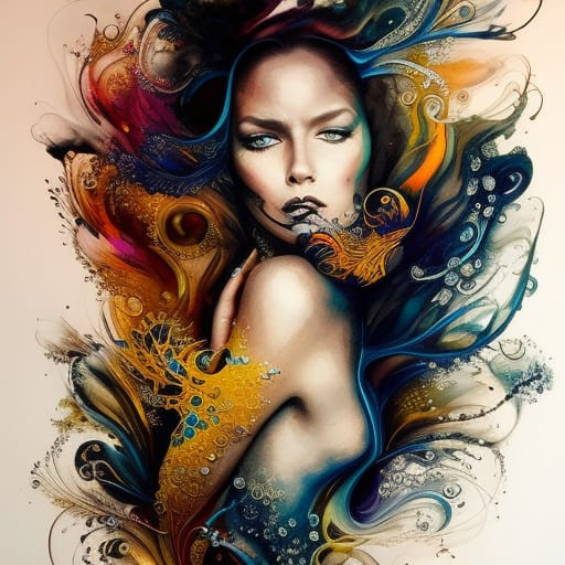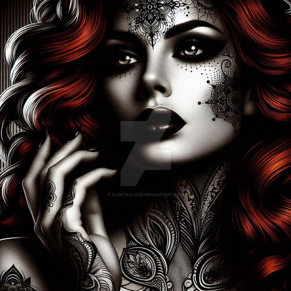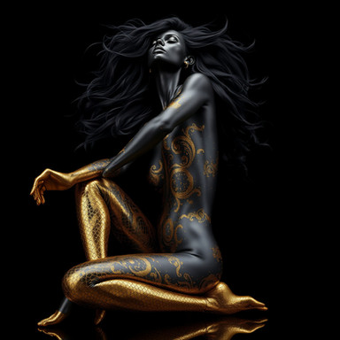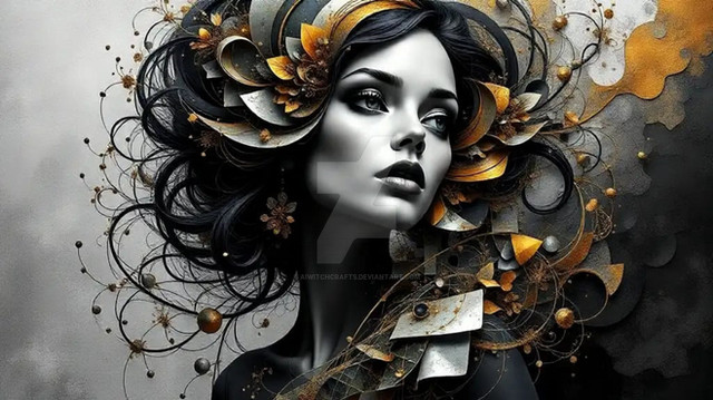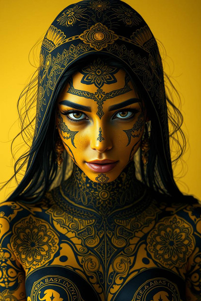 #portrait #beauty #digitalart #characterdesign #fantasyart #tattoo #popart #digitalpainting #body #blackandyellow #patterns #wallpaper #artai #aiart