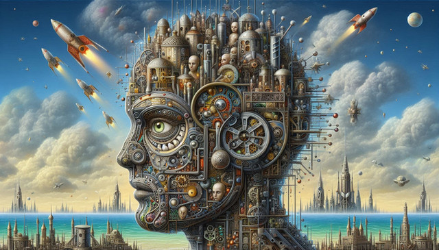 #astronaut #brokenglass #digitalart #evolution #face #fantasy #scifi #space #staircase #surrealism #tv #bo_dion #dalle3_ai_art