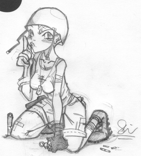 I was drawing Tank Girl but now I don't want to draw her anymore so i'm going to draw something else.Photo ref used.